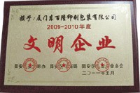 2007年以来公司四次获得同安区“文明企业”称号,并于2010年通过ISO质量体系认证。公司业务涉及各种包装彩盒、不干胶、说明书、精装书本画册、手提袋、档案盒、公司表单等纸制品印刷。欢迎各界伙伴携手合作,共创未来。